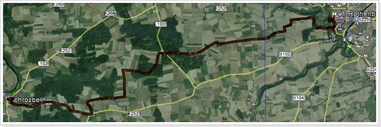 Kaputt aber glücklich, stiegen wir hier in unser morgens abgestelltes Auto, um den zweiten Wagen wieder in Rothenburg ob der Tauber zu holen. Die mitgeführte GPS-Uhr zeigte uns am Ende der ersten Tour eine Gesamtkilometerzahl von 20,2 km an, also 1,7 km weiter als geplant. Einen Pilgerstempel konnten wir hier leider nicht mehr ergattern. Die ausgewiesenen Stempelstellen waren Sonntags zu dieser Uhrzeit alle schon geschlossen. | |