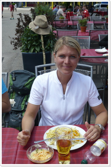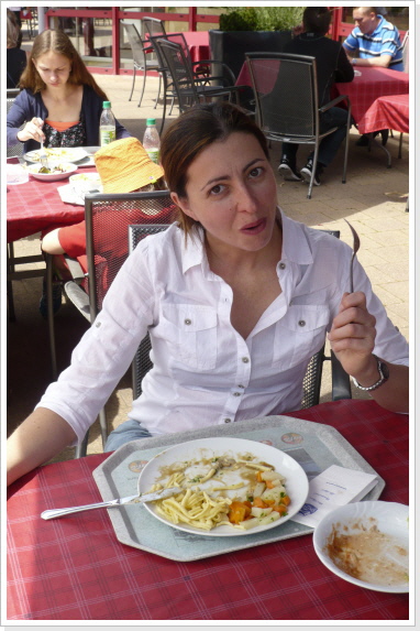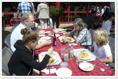 Dort alle wohlbehalten wieder angekommen, stärkten wir uns mit einem eigens für diesen Tag vom Museums-Restaurant kreierten Pilgermenü auf der Restaurantterrasse. Zum Abschluß dieses schönen Tages, bekam jeder Pilger noch seinen wohl verdienten Stempel des Auto & Technik Museums in seinen Pilgerpaß.